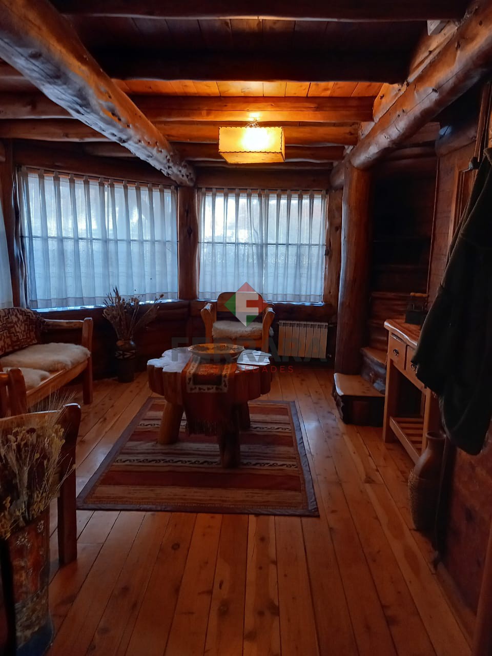 Hermoso complejo estilo rústico con muy buena construcción en ciprés macizo revestido en piedra, ubicado en el km 6 de la Av. Bustillo (ingreso por calle Nilpi) . compuesto por una casa principal y dos cabañas.